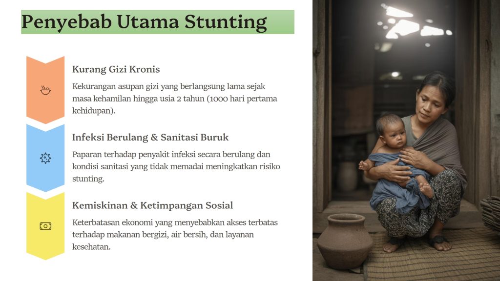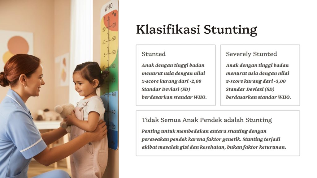 Stunting adalah gangguan pertumbuhan pada anak yang terjadi akibat kekurangan gizi kronis, terutama dalam 1.000 hari pertama kehidupan. Kondisi ini ditandai dengan tinggi badan anak yang berada di bawah standar untuk usianya.