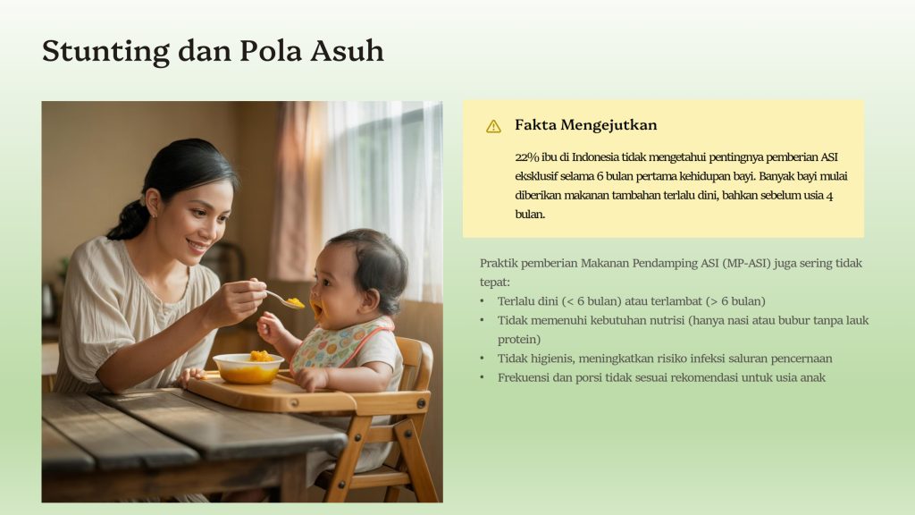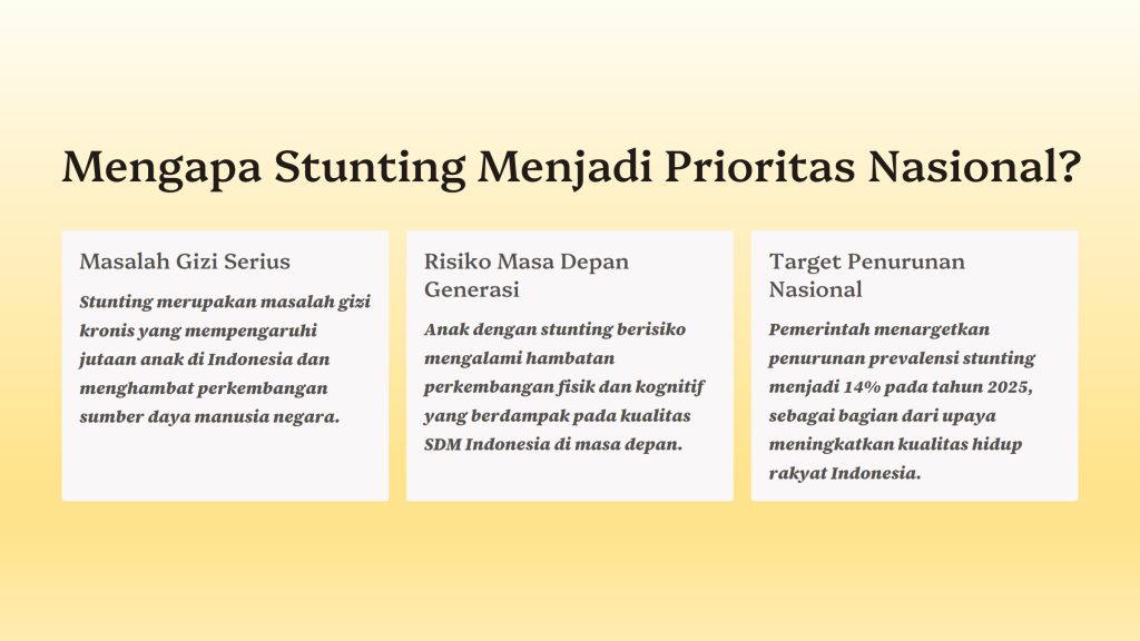 Stunting menjadi salah satu tantangan kesehatan terbesar yang dihadapi Indonesia saat ini. Kondisi ini mengancam masa depan jutaan anak dan membutuhkan perhatian serius dari seluruh elemen masyarakat. Mari kita pahami lebih dalam tentang stunting, dampaknya, dan bagaimana kita semua dapat berperan dalam pencegahannya.